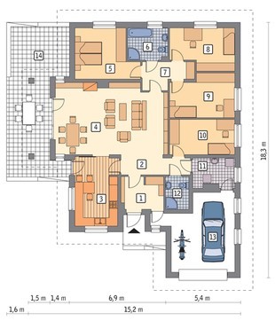 Проект содержит три раздела – АрхитектурныйКонструктивный и Инженерный: водоснабжение, отопление, вентиляция, канализация, электроснабжение (приобретается за дополнительную плату) + Пояснительная записка.