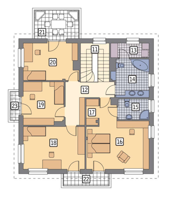 Жильцов порадует просторный гараж для хранения одной единицы транспорта с возможностью организации крупной мастерской или подсобного помещения для работ по интересам. Второй этаж представлен четырьмя спальнями. Одна из них наиболее комфортная за счет большого балкончика, места достаточно для организации романтических чаепитий. Собственный санузел позволяет с удобствами принимать водные процедуры.