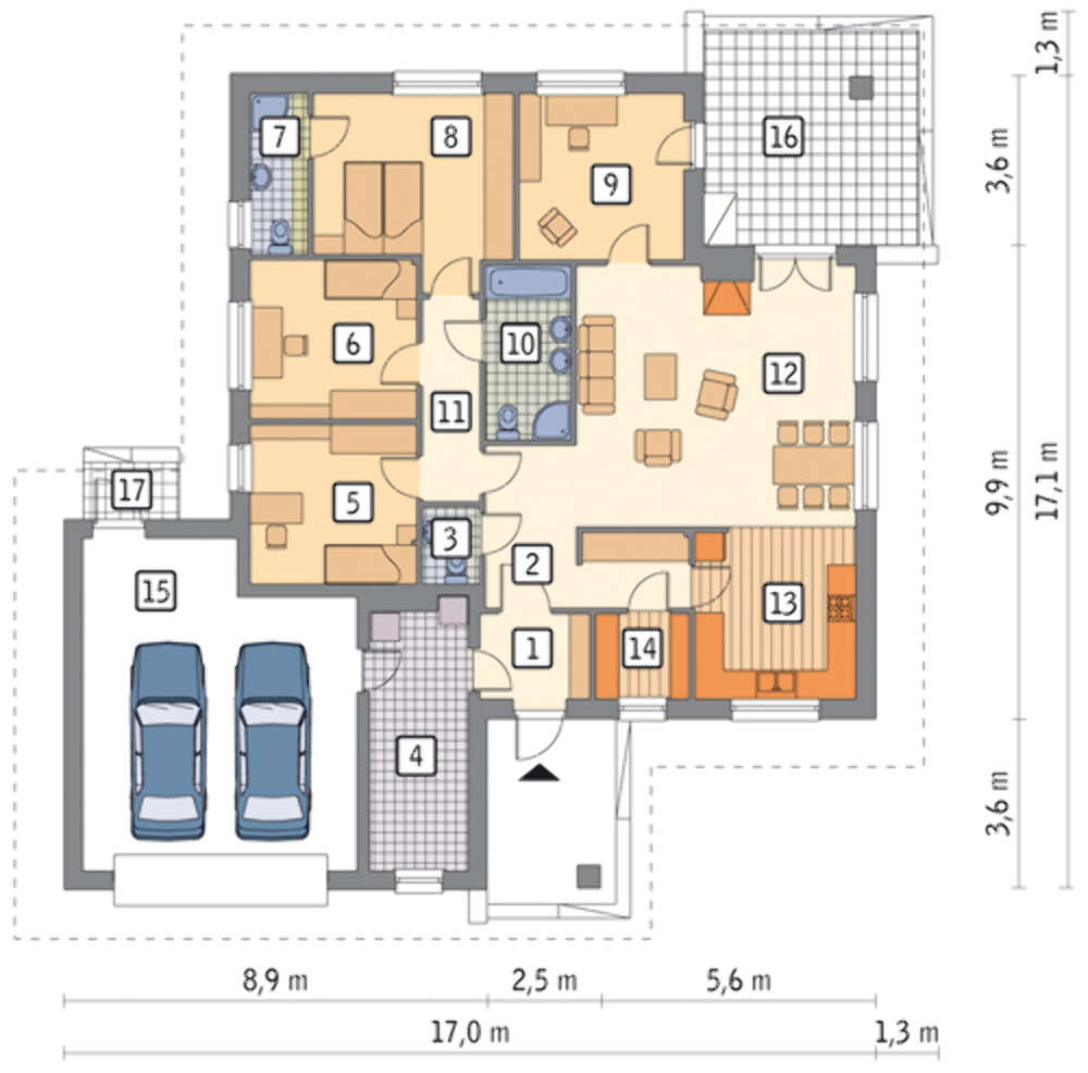 Одноэтажный коттедж на 2 авто и 5 спален 4M6203a