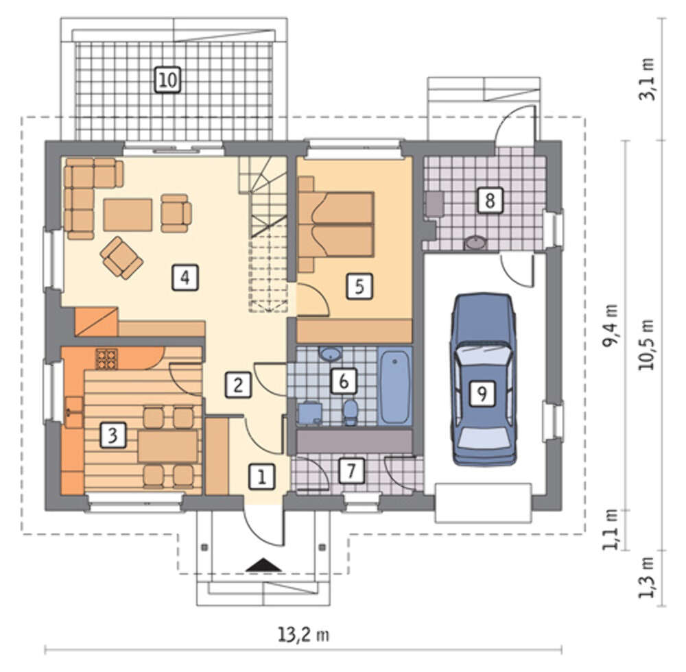 Проект содержит три раздела – АрхитектурныйКонструктивный и Инженерный: водоснабжение, отопление, вентиляция, канализация, электроснабжение (приобретается за дополнительную плату) + Пояснительная записка.