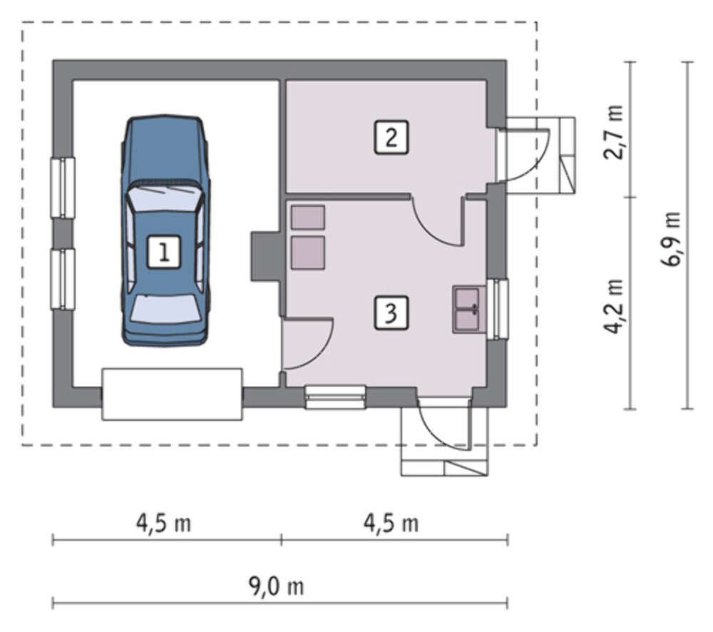 Проект содержит три раздела – АрхитектурныйКонструктивный и Инженерный: водоснабжение, отопление, вентиляция, канализация, электроснабжение (приобретается за дополнительную плату) + Пояснительная записка.