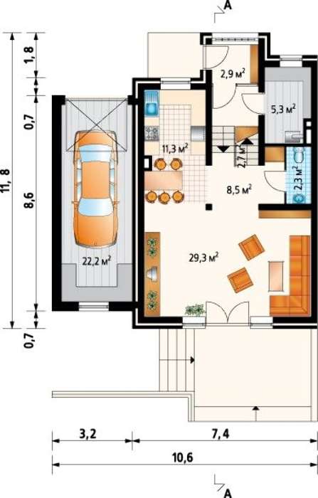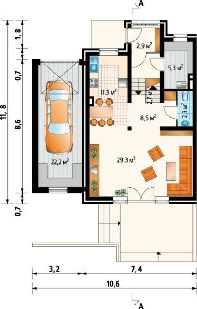 Архитектурный проект оригинального таунхауса с площадью 140 m²