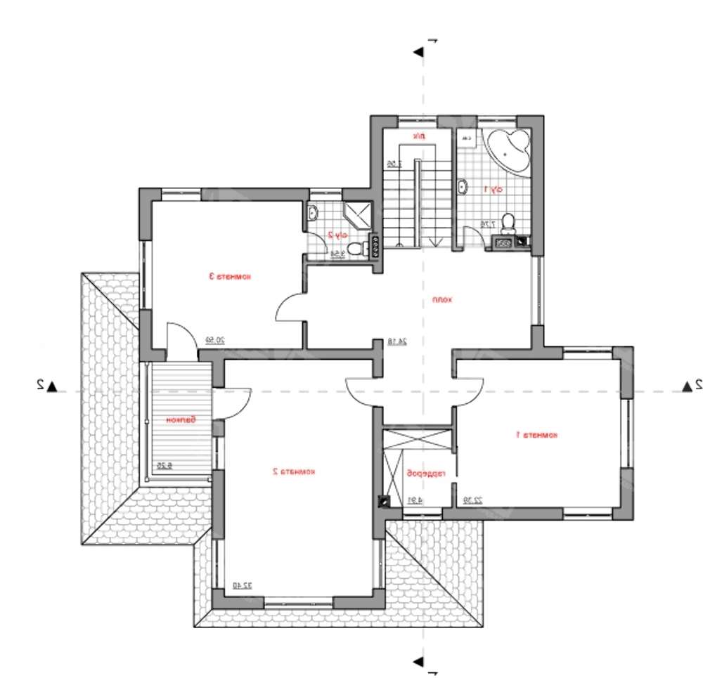 Проект содержит три раздела – Архитектурный, Конструктивный и Инженерный: водоснабжение, отопление, вентиляция, канализация, электроснабжение (приобретается за дополнительную плату) + Пояснительная записка.