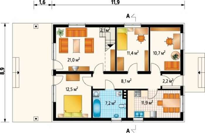 Архитектурный проект просторного и удобного коттеджа с шестью спальнями