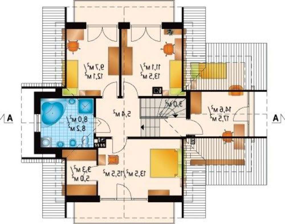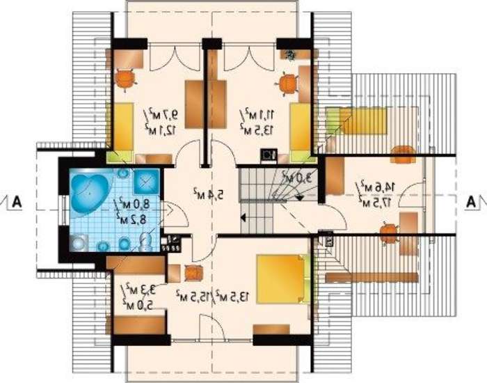 Второй этаж не готовит особых сюрпризов. Четыре спальни, три из которых имеют выходы на балкон, позволяют домочадцам с комфортом отдохнуть в условиях загородной постройки и набраться сил для завтрашнего важного дня.