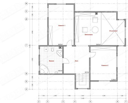 Проект содержит три раздела – Архитектурный, Конструктивный и Инженерный: водоснабжение, отопление, вентиляция, канализация, электроснабжение (приобретается за дополнительную плату) + Пояснительная записка.