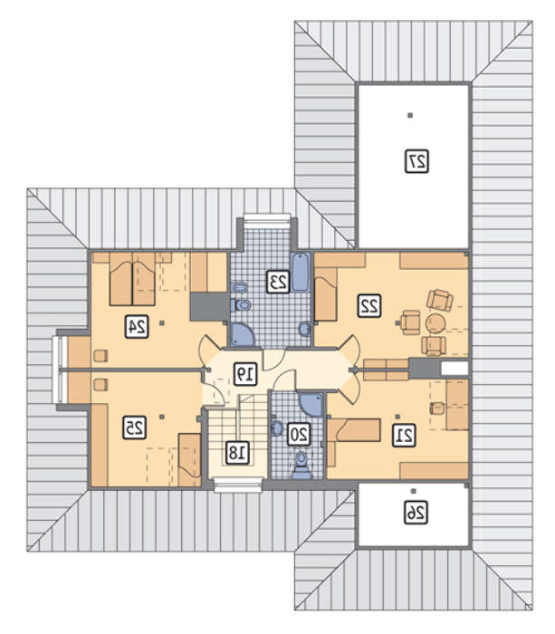 Проект содержит три раздела – АрхитектурныйКонструктивный и Инженерный: водоснабжение, отопление, вентиляция, канализация, электроснабжение (приобретается за дополнительную плату) + Пояснительная записка.