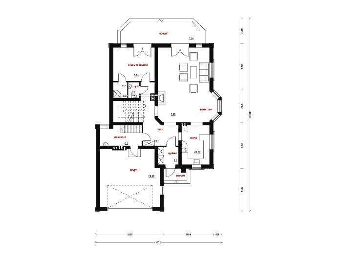 Проект содержит три раздела – Архитектурный, Конструктивный и Инженерный: водоснабжение, отопление, вентиляция, канализация, электроснабжение (приобретается за дополнительную плату) + Пояснительная записка.