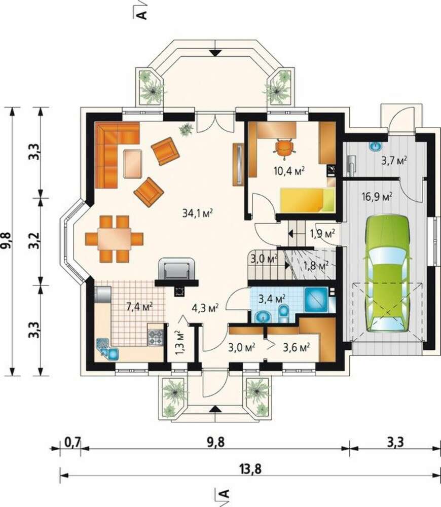 Мистер - стиль. Именно такого титула заслуживает большой загородный коттедж с элегантным эркером и балконами. В нем сделано вся для создания образа франта — начиная от оригинальной планировки, закачивая изящными формами и величественной раскраской. Коттедж прекрасно смотрится под лучами солнца среди цветущей растительности загородного подворья. Отлично выглядит, когда большие звезды освещают его шикарные бока.