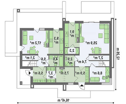 • 4M7106 Чертеж большого коттеджа площадью 228 кв. м в стиле фьюжн