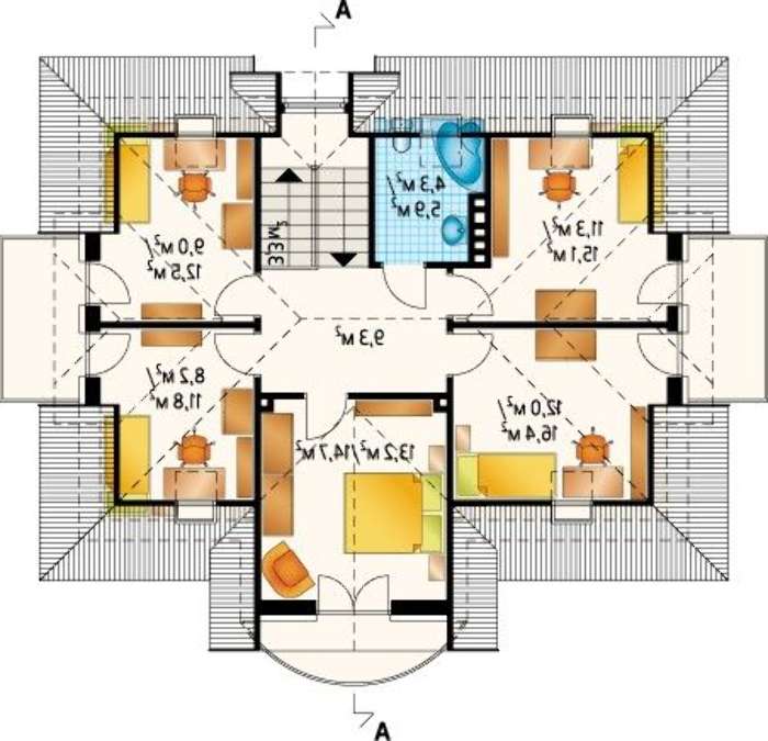 Чертеж прекрасного коттеджа площадью 177 кв. м в чешском стиле 4M3788