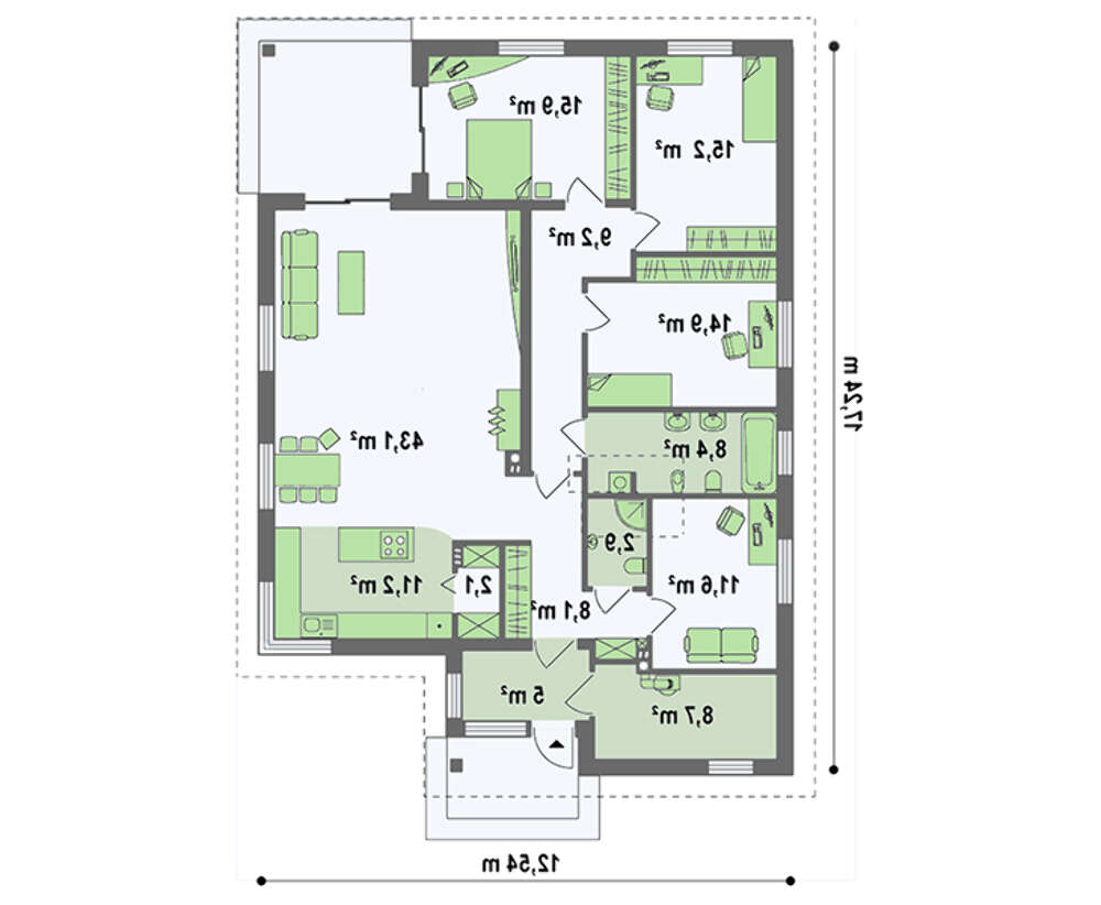 Чертеж симпатичного дома на 155 кв. м с рациональным разделением пространства 4M7142