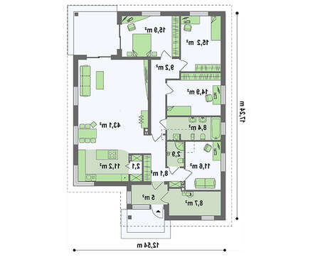 • 4M7142 Чертеж симпатичного дома на 155 кв. м с рациональным разделением пространства