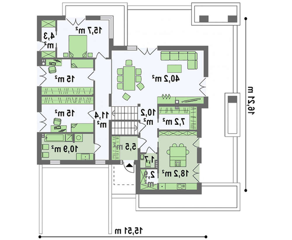 Чертеж современного особняка площадью 234 кв. м в стиле минимализма 4M639