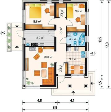 • 4M3052 Дачный домик с тремя спальнями для небольшой семьи