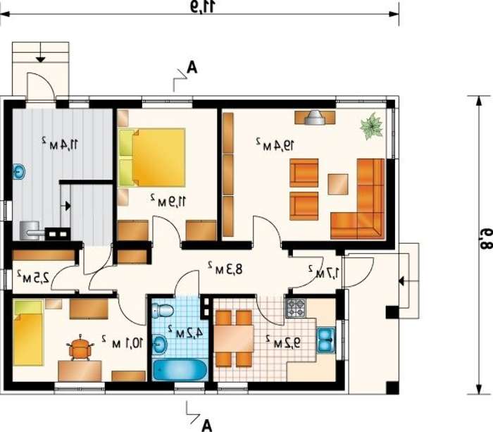 • 4M3447 Дом прямоугольной формы 12м на 9м
