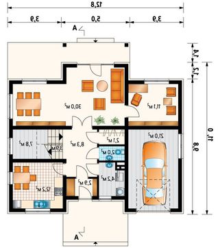 • 4M3369 Дом с четырехскатной кровлей и гаражом на одно авто