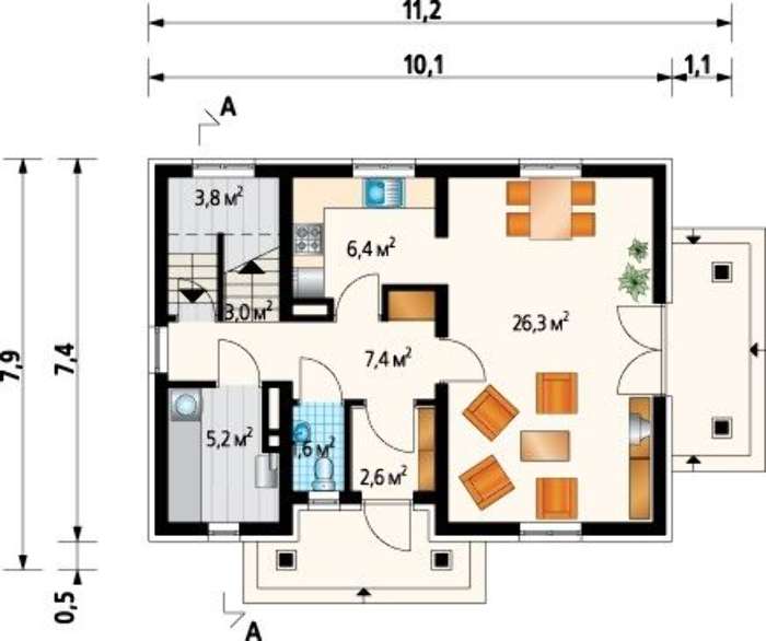 Площадь застройки:73 м2