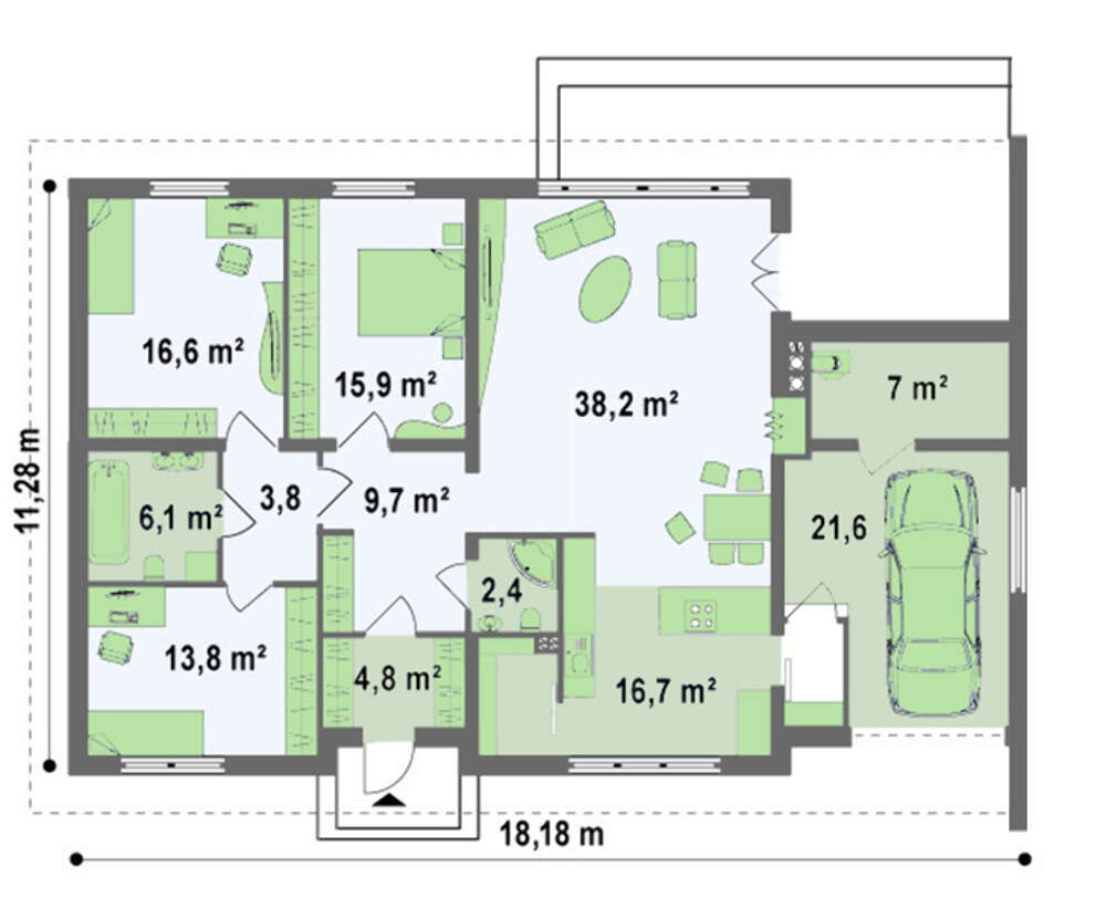 Проект шикарного комфортного одноэтажного особняка с гаражом