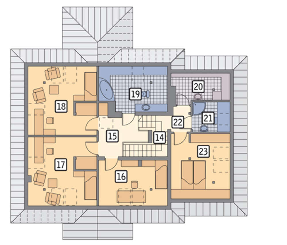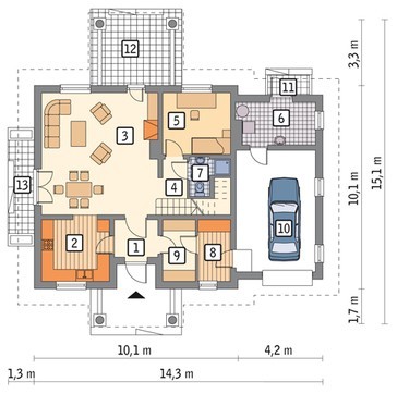 Проект содержит три раздела – АрхитектурныйКонструктивный и Инженерный: водоснабжение, отопление, вентиляция, канализация, электроснабжение (приобретается за дополнительную плату) + Пояснительная записка.