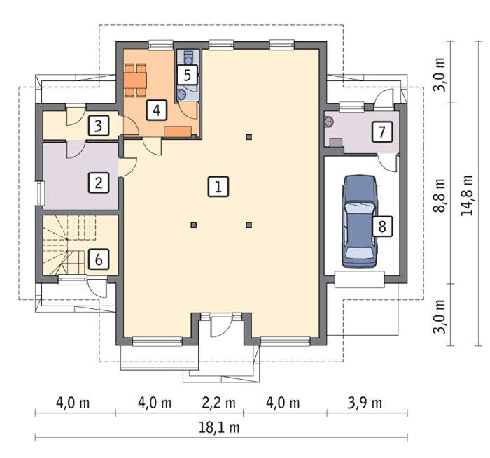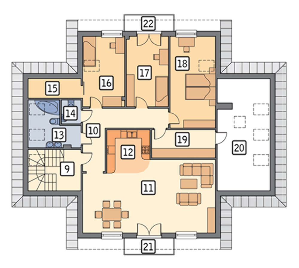 Проект содержит три раздела – АрхитектурныйКонструктивный и Инженерный: водоснабжение, отопление, вентиляция, канализация, электроснабжение (приобретается за дополнительную плату) + Пояснительная записка.