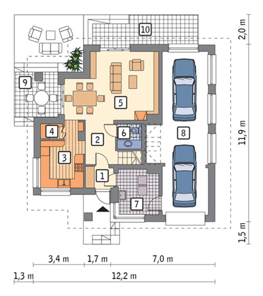 Проект содержит три раздела – АрхитектурныйКонструктивный и Инженерный: водоснабжение, отопление, вентиляция, канализация, электроснабжение (приобретается за дополнительную плату) + Пояснительная записка.