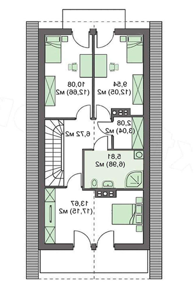 Проект содержит три раздела – Архитектурный, Конструктивный и Инженерный: водоснабжение, отопление, вентиляция, канализация, электроснабжение (приобретается за дополнительную плату) + Пояснительная записка.