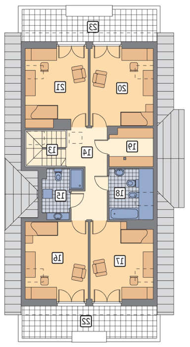 Проект содержит три раздела – АрхитектурныйКонструктивный и Инженерный: водоснабжение, отопление, вентиляция, канализация, электроснабжение (приобретается за дополнительную плату) + Пояснительная записка.