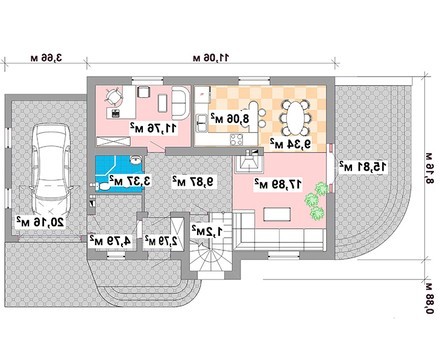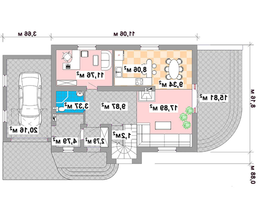 Отдельная площадь отдана для кабинета владельца дома. Находясь рядом с семьей, здесь можно принимать партнеров по бизнесу, улаживать хозяйственные вопросы, заниматься решением важных проблем. Помимо жилой площади, на первом уровне достаточно места отдано под подсобные помещения. Это санитарная комната, гардеробная, просторный гараж на один автомобиль.