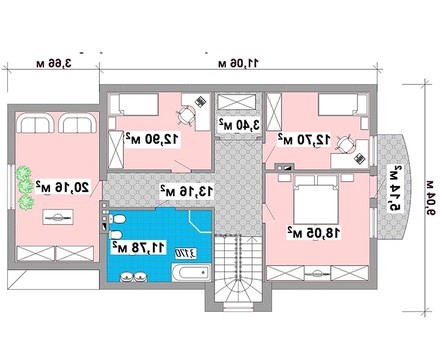 Второй этаж представлен 4 спальными помещениями, все довольно просторные и комфортные. Компактный гардероб поможет хранить солидные запасы нарядов для всех членов семьи. Две комнаты соединены красивым балкончиком Ажурная конструкция смотрится стильно и празднично, украшая жилой дом. Просторная санитарная комнаты поможет разместить самое современное оборудование.