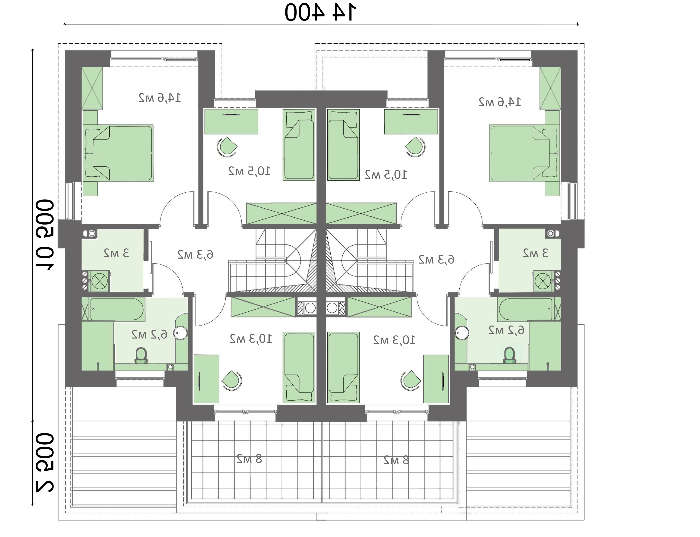 Спальные апартаменты отнесены на второй этаж. Включает по три просторных спальни в каждой квартире. Площади личной комнаты достаточно для размещения мебельного гарнитура. С каждой комнаты имеется выход на балкон. Гости и хозяева имею возможность достаточно времени проводить на природе, наслаждаться загородной тишиной и дышать чистым воздухом.