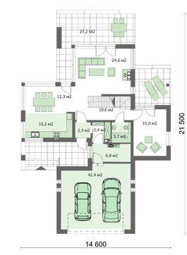 Гостиное помещение способно вызвать восторги у любого посетителя. Открытая солнцу и природе сторона выделена для обеденного стола. В зависимости от сезона, в атмосфере цветущих роз или склонившихся под тяжестью снега веток проходят ранние утренники, поздние ужины или торжественные обеды. Имеются специальные помещения для тихих встреч и бесед, деловых переговоров, романтических свиданий. Просторный гараж рассчитан на две единицы транспорта.