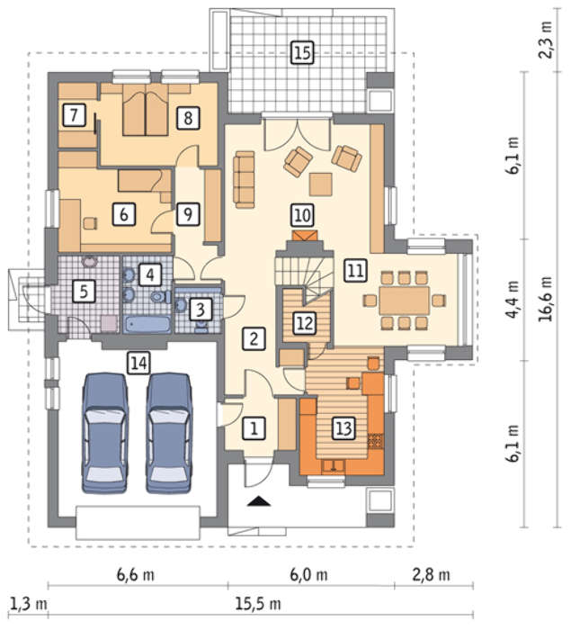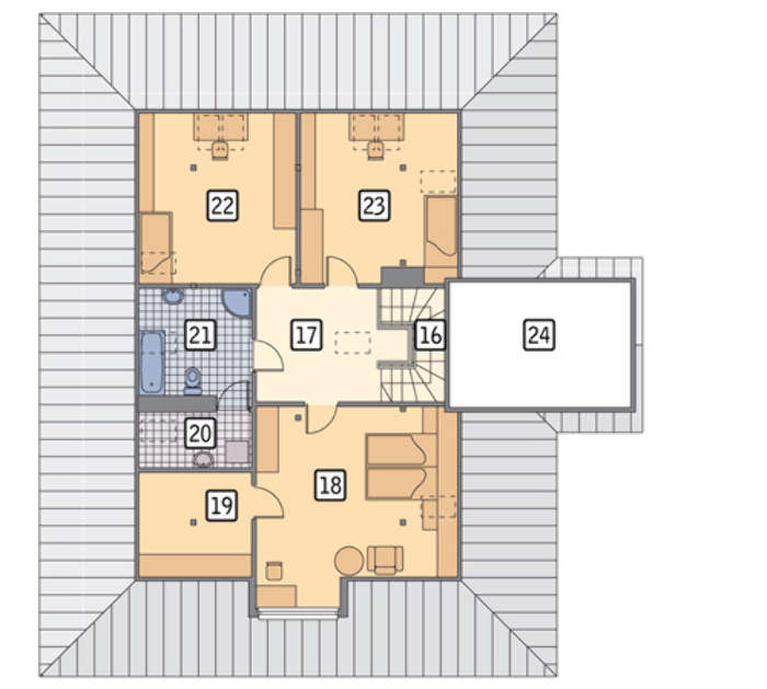 Проект содержит три раздела – АрхитектурныйКонструктивный и Инженерный: водоснабжение, отопление, вентиляция, канализация, электроснабжение (приобретается за дополнительную плату) + Пояснительная записка.