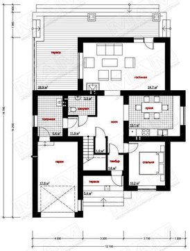 Проект содержит три раздела – Архитектурный, Конструктивный и Инженерный: водоснабжение, отопление, вентиляция, канализация, электроснабжение (приобретается за дополнительную плату) + Пояснительная записка.