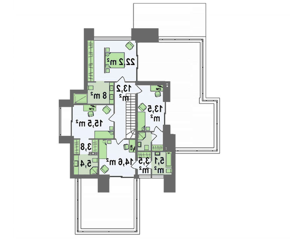 Личные горницы второго этажа рассчитаны на самых требовательных жильцов. Все помещения имеют неповторимую планировку. В пространство включены дополнительные комнаты, найдено место как для гардеробной, так и для санудобств.