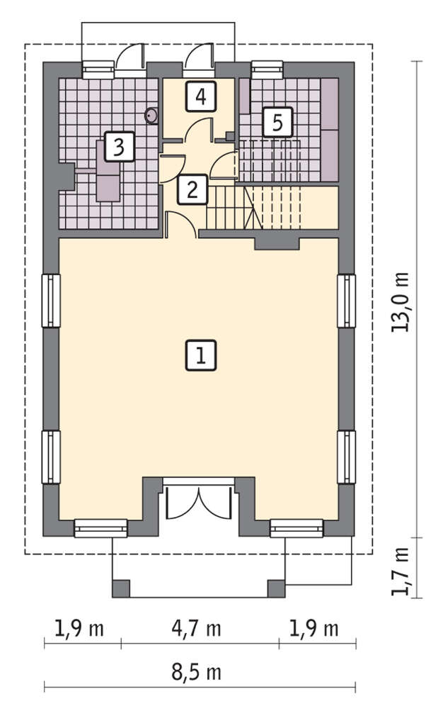 Проект содержит три раздела – АрхитектурныйКонструктивный и Инженерный: водоснабжение, отопление, вентиляция, канализация, электроснабжение (приобретается за дополнительную плату) + Пояснительная записка.