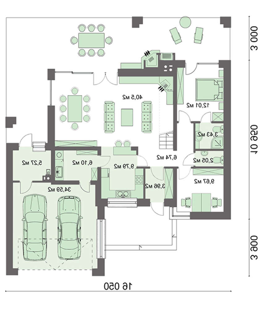 Под темной кровлей выделено достаточно места для просторного гаража, здесь свободно разместиться две машины. Значительных габаритов веранда рассчитана на размещение мебели столовой или для отдыха. Любители свежего воздуха на ее просторе смогут устраивать чаепития, готовить вкусные шашлыки и нежиться под рассеянными лучами солнца.