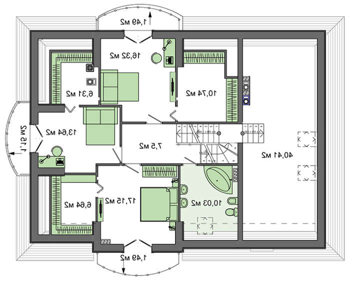 Красивый двухэтажный дом с декором коричневого цвета придется по душе многим застройщикам. Коттедж предназначен для круглогодичного проживания среднестатистической семьи. Проект может быть использован как в качестве городской застройки, так и для особняка или дачного домика. Экстерьер коттеджа привлекает внимание кровлей сложной формы, тремя балконами и закрытой террасой. Прямоугольные большие окна с частым переплетом, высокий цоколь и входной портал относятся к европейской архитектуре.