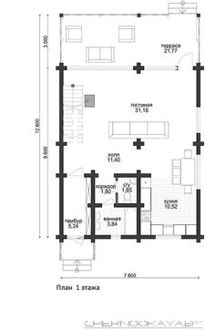 Внутреннее пространство дома максимально функционально. Центральную часть первого этажа занимает гостиная со вторым светом, который придает помещению эффектной солидности. Камин в середине комнаты служит воплощением домашнего очага. Вокруг него долгими осенними вечерами собирается вся семья. Кроме того, камин играет роль альтернативного отопления.