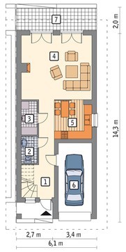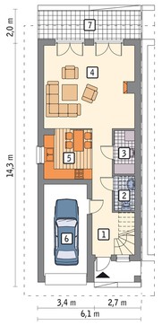 Другая половина таунхауса полностью повторяет описанную планировку в зеркальном отображении, относительно оси, проходящей через середину коттеджа.
