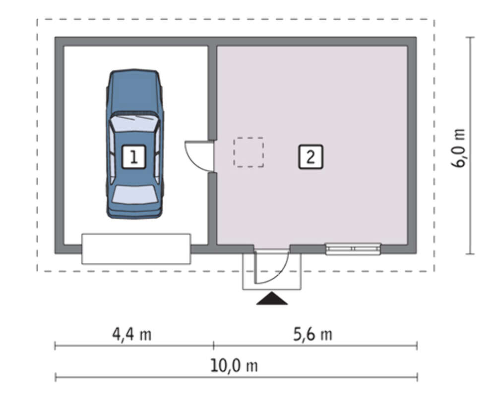 • 4M6057b Гараж на 1 авто с четырехскатной крышей