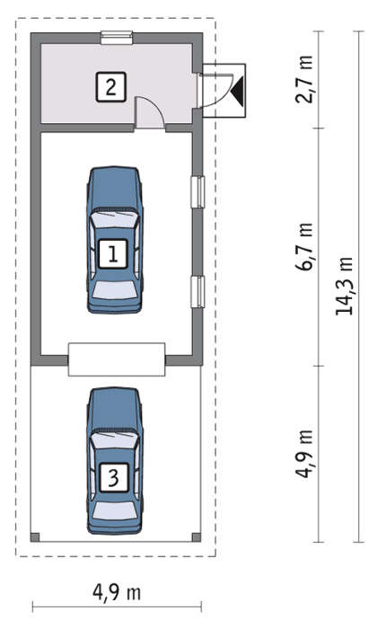• 4M6043b Гараж с навесом под четырехскатной крышей