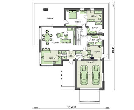 Проект содержит три раздела – Архитектурный, Конструктивный и Инженерный: водоснабжение, отопление, вентиляция, канализация, электроснабжение (приобретается за дополнительную плату) + Пояснительная записка.