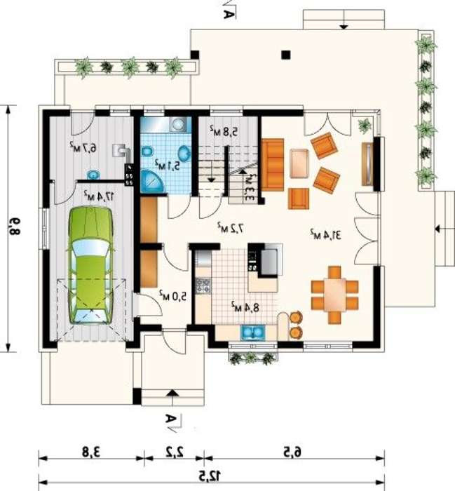 Расположенный под крышей дома гараж позволяет сэкономить на строительстве еще одного сооружения, хранить авто и выполнять техобслуживание машины в комфортных условиях отапливаемой мастерской.