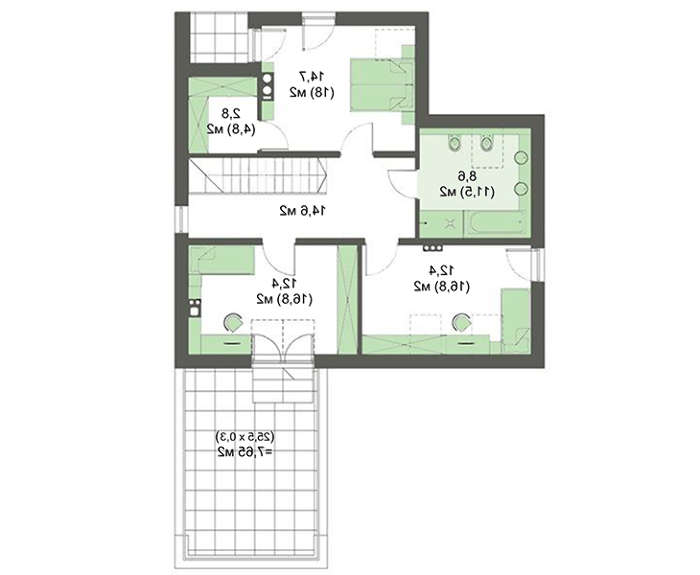 Второй уровень отдан под личную территорию. Здесь расположены три спальни разной площади и комфортности и санитарная комната.