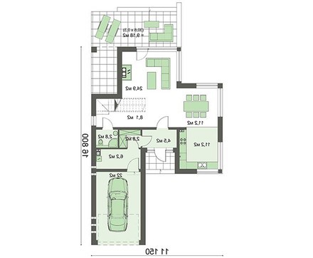 В проекте предусмотрен встроенный гараж, его площадь помогает разместить одно авто. В смежном помещении находится топочная, которую хозяева, как правило, превращают в домашнюю мастерскую. В приватных усадьбах без нее практически не обойтись.