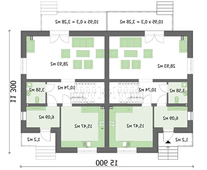 Проект содержит три раздела – Архитектурный, Конструктивный и Инженерный: водоснабжение, отопление, вентиляция, канализация, электроснабжение (приобретается за дополнительную плату) + Пояснительная записка.