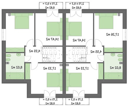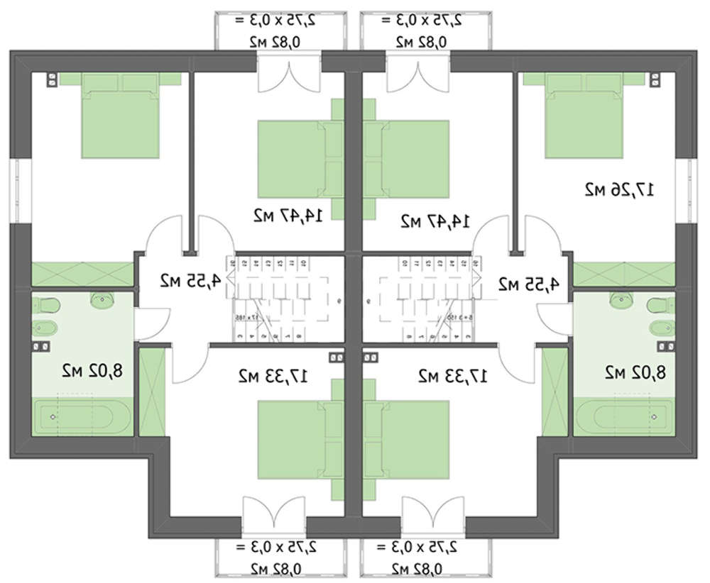 - Вот прекрасный двухэтажный особняк на две семьи: посмотрите, первый этаж отведен под общение семьи, а второй – под отдых, и там находится три спальни.