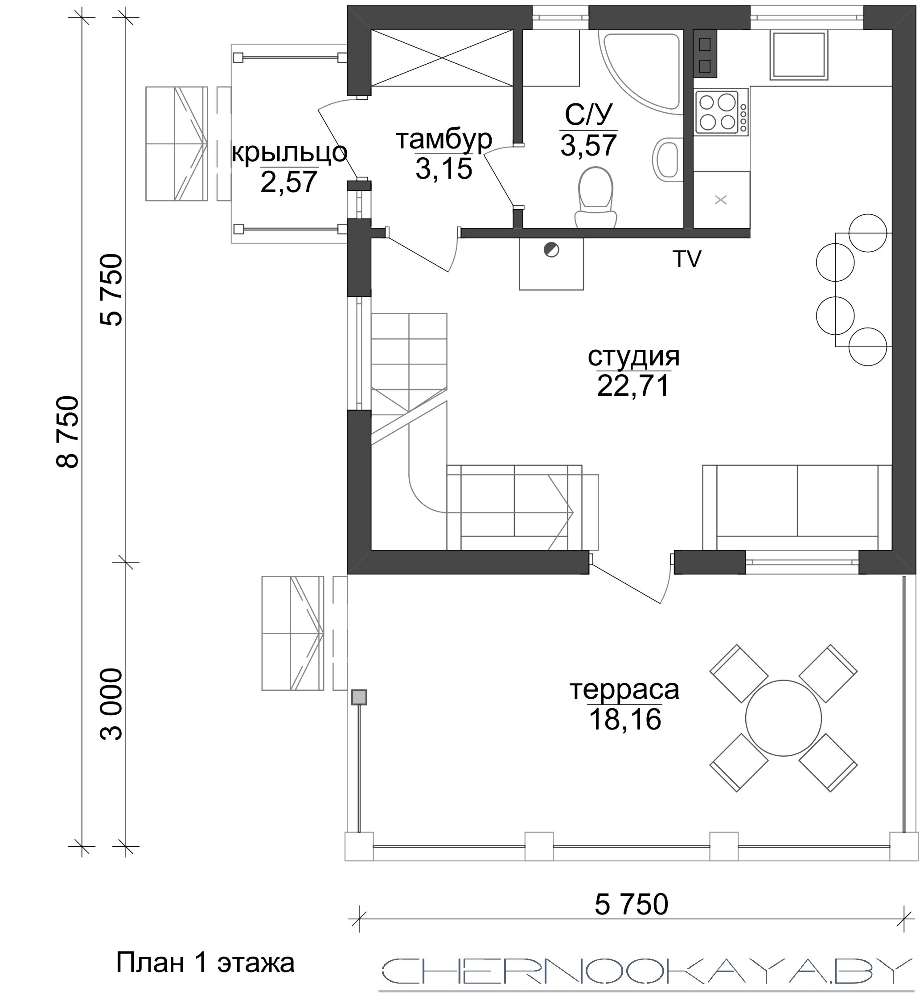 Проект содержит три раздела – АрхитектурныйКонструктивный и Инженерный: водоснабжение, отопление, вентиляция, канализация, электроснабжение (приобретается за дополнительную плату) + Пояснительная записка.