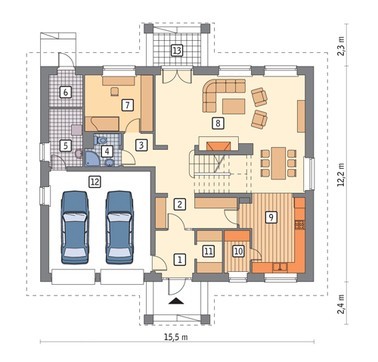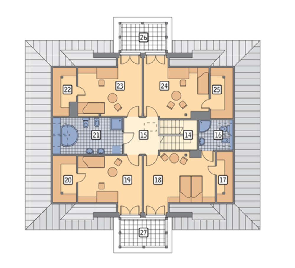Проект содержит три раздела – АрхитектурныйКонструктивный и Инженерный: водоснабжение, отопление, вентиляция, канализация, электроснабжение (приобретается за дополнительную плату) + Пояснительная записка.